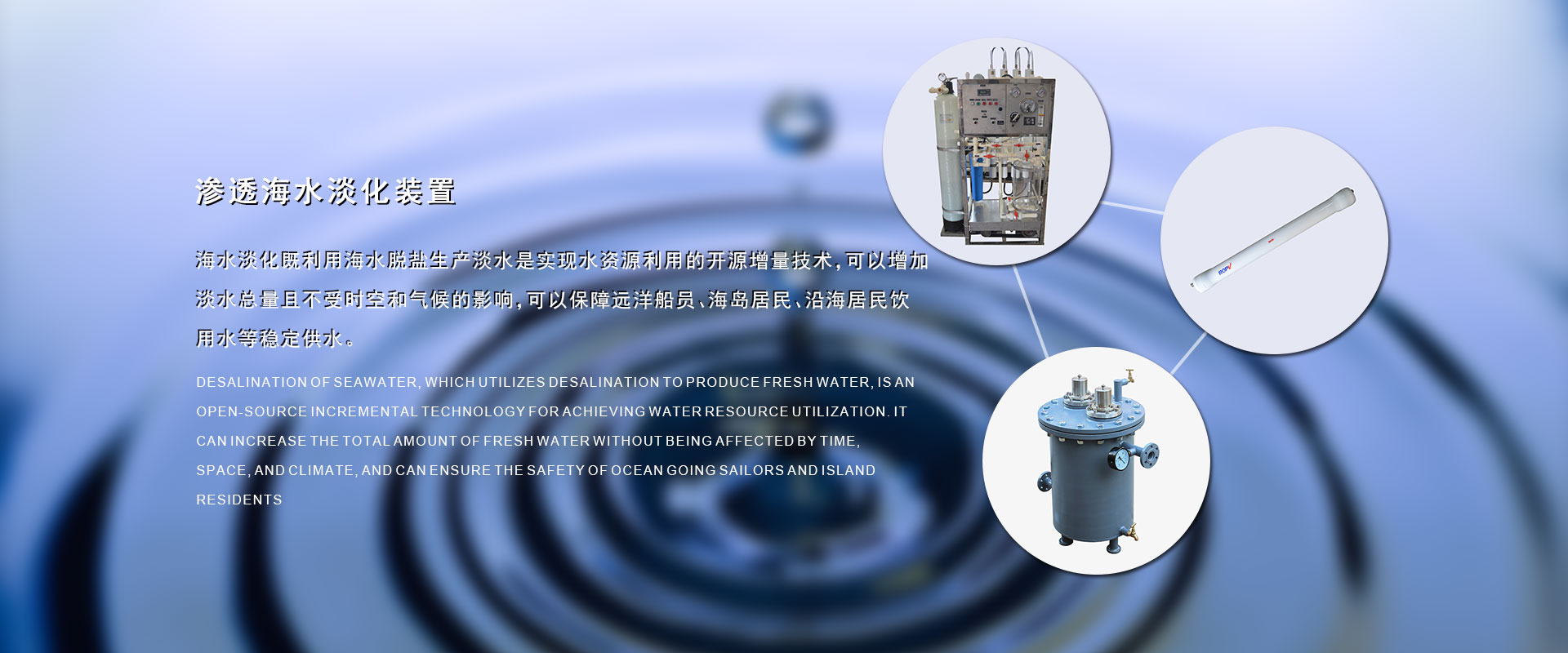 在過去的17年里我們?yōu)榇疤峁┖KO(shè)備解決了因船的續(xù)航長而不能解決的淡水問題,全球的水資源越來越少,我們以改善遠(yuǎn)洋船員、海島居民的生活水資源為已任,以科技創(chuàng)新、誠信經(jīng)營為核心競爭力。